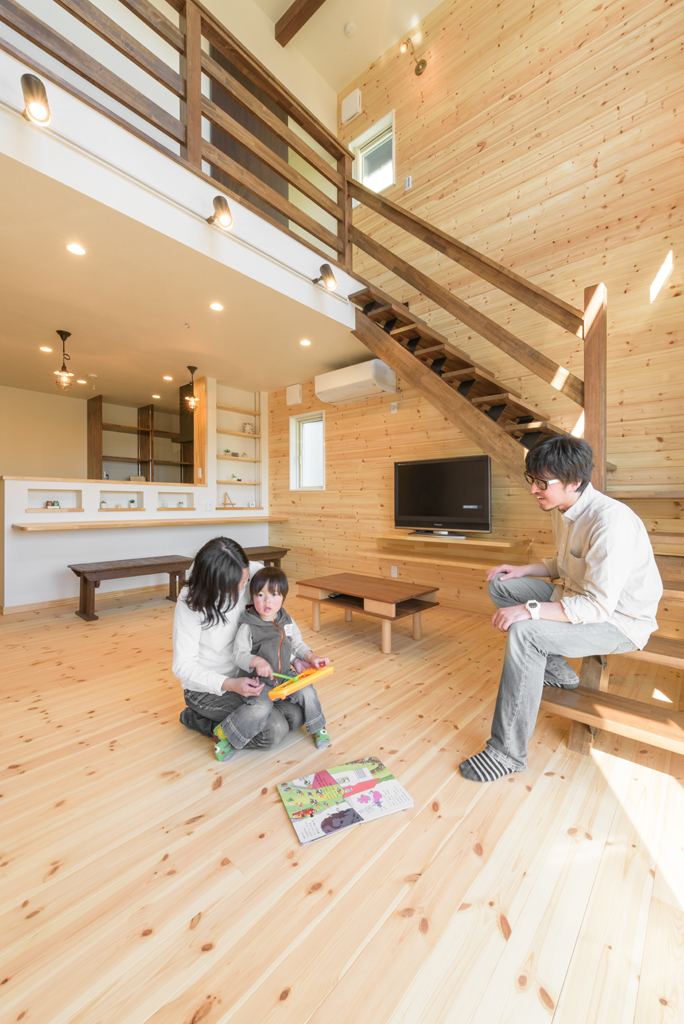 吹抜けの窓からの日射と高断熱により、冬もとても暖かい空間になっています。